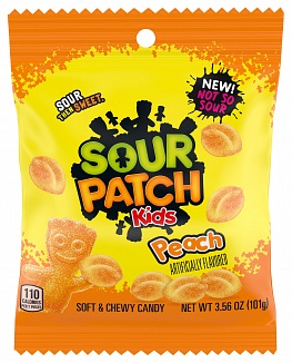 070462009279 Nätsukommid virsikumaitselised Sour Patch Kids 101g. Koostisosad: suhkur, invertsuhkrusiirup, maisisiirup, modifitseeritud maisitärklis, happesuse regulaatorid: E330, E334, lõhna- ja maitseained, värvained: E102*, E129*.Hoiatus! *Võib avaldada kahjulikku mõju laste aktiivsusele ja tähelepanuvõimele.Toiteväärtus/100g: energia 1485kJ / 355kcal, rasv 0g, küllastunud rasv 0g, süsivesikud 90g, suhkur 77g, valk 0g, sool 0,2g. Parim enne ja partii tähis trükitud pakendile. Säilitada kuivas ja jahedas. Turustaja: Experienso OÜ, Aleksandri 13 Tartu