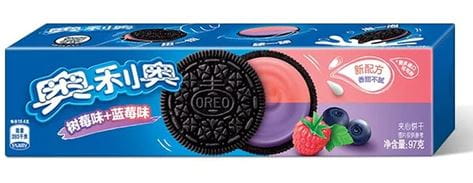 6901668005915 Küpsised mustika-vaarikamaitselise kreemiga Oreo 97g. Koostisosad: suhkur, NISUjahu, suhkur, palmiõli, kakaopulber, maisitärklis, glükoos, mustika- ja vaarikamahl, sool, PIIMapulber, happesuse regulaator: E330, kergitusained: E500, E503, emulgaatorid (sorbitool, SOJAletsitiin), lõhna- ja maitseained. Võib sisaldada seesami, muna ja piima jääke. Energiasisaldus 2027kJ/484 kcal,Rasvad 21,1g,millest küllastunud rasvhapped 16g,Süsivesikud 67,8g,millest suhkrud 50g,Valgud 4,8g, Sool 0,9g. Parim enne ja partii tähis trükitud pakendile. Säilitada kuivas ja jahedas. Turustaja: Experienso OÜ, Aleksandri 13 Tartu