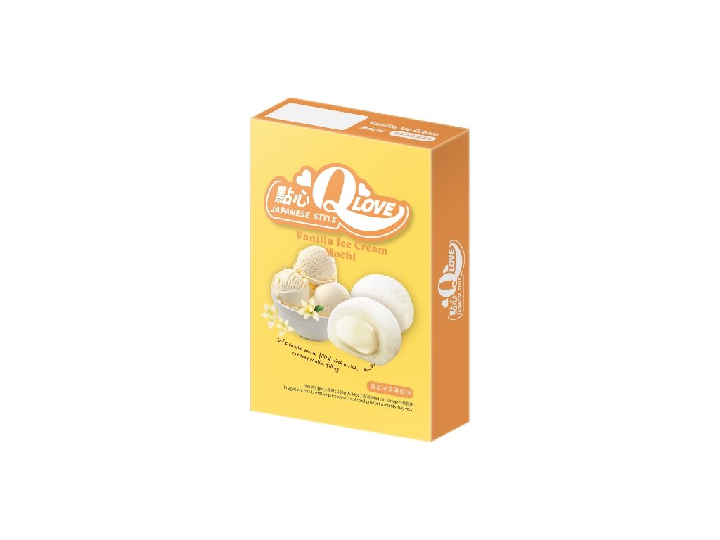 4712928345601 Mochi vanillijäätisemaitseline QLove 180g. Koostisosad: maltoos, kleepriisijahu, valge šokolaadi maitsega täidis (suhkur, palmiõli, NISUJAHU, LAKTOOS, PIIMapulber, PIIMAVADAKupulber, kakaovõi, emulgaatorid: SOJAletsitiin, E471, E476, E492), suhkur, vesi, palmiõli, kakaopulber, kartulitärklis, lõhna- ja maitseained, kookosõli, säilitusaine: E202, emulgaator: E471, paksendaja: E415. Võib sisaldada seesami, maapähklite, pähklite ja muna jääke. Toitumisalane teave 100 g kohta. Energia 1493,69 kJ / 357 kcal rasvad 9g millest küllastunud rasvhapped 5,9g süsivesikud 67,7g millest suhkrud 46,6g valgud 1,3 g sool 0,02g. Parim enne ja partii tähis trükitud pakendile. Säilitada kuivas ja jahedas. Toodetud Taivanis. Turustaja: Experienso OÜ Aleksandri 13 Tartu