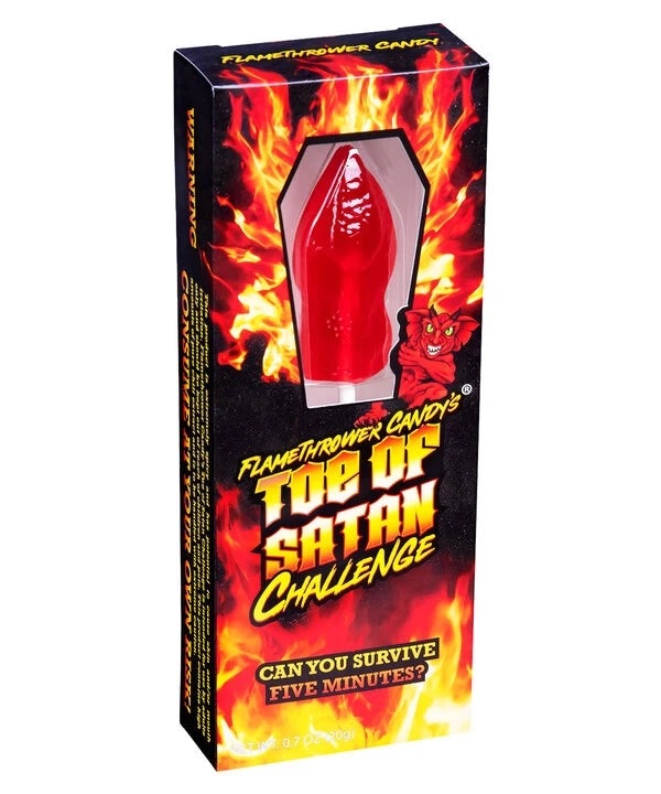 862017000202 Pulgakomm Toe of Satan® Challenge 20g. Hoiatused! KÕRGE KAPSAITSIINI SISALDUS. Toode ei ole sobilik lastele, rasedatele ning rinnaga toitvatele naistele. Hoida lastele kättesaamatus kohas. Vältige tarbimist, kui olete allergiline tuliste tshillide või kapsaitsiini vastu või kui Teil esineb terviseprobleeme ( eriti seedetrakti haigusi, maohaavandeid või südame-veresoonkonna probleeme). Vältige tarbimist tühja kõhuga. Kui peale tarbimist esinevad pikaaegsed rasked hingamishäired, pöörduge koheselt arsti poole! Koostisosad: suhkur, hele maisisiirup, vesi, lõhna- ja maitseained, kontsentreeritud tshillipipraekstrakt (9 000 000 ühikut Scoville skaalal), lõhna- ja maitseained, säilitusaine: naatriumbensoaat, happesuse regulaator: sidrunhape, värvaine: E129*. Hoiatus! *Võib avaldada kahjulikku mõju laste aktiivsusele ja tähelepanuvõimele! Toitumisalane teave 100g. kohta. Energiasisaldus: 1882,8kJ / 450kcal, rasvad 0g, millest küllastunud rasvhappeid 0g, süsivesikud 120g, millest suhkruid 120g, valgud 0g, sool 0,025g. Parim enne ja partii tähis trükitud pakendile. Säilitada kuivas ja jahedas. Toodetud USAs. Importija: LAVEX AS, Rakvere, Seminari 23