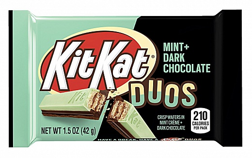 034000318285 Vahvlid piparmündi- ja tumešokolaadi maitsega KitKat 42g. Hershey. Koostisosad: suhkur, taimsed õlid (palmi-, shea-, päevalille-, palmituuma- ja saflooriõli), NISUjahu, kakaomass, lõss (PIIM), maisisiirupi kuivained, kakaovõi, LAKTOOS, kakaopulber, PIIMArasv, emulgaatorid (SOJAletsitiin, E476), piparmündiõli, värvained: E102*, E133, sool, pärm, vanilli lõhna- ja maitseained, kergitusaine: E500. Võib sisaldada maapähklite jääke. *Võib avaldada kahjulikku mõju laste aktiivsusele ja tähelepanuvõimele! Toiteväärtus/100g: Energia 2092kJ / 500kcal, Rasv 29g, Küllastunud rasv 19g, Süsivesikud 64g, Suhkur 45g, Valk 4,8g, Sool 0,2g. Parim enne ja partii tähis trükitud pakendile. Säilitada kuivas ja jahedas. Turustaja: Experienso OÜ, Aleksandri 13 Tartu